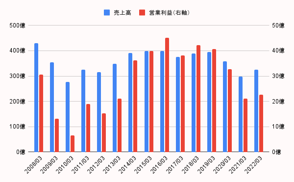 過去の業績のグラフです。