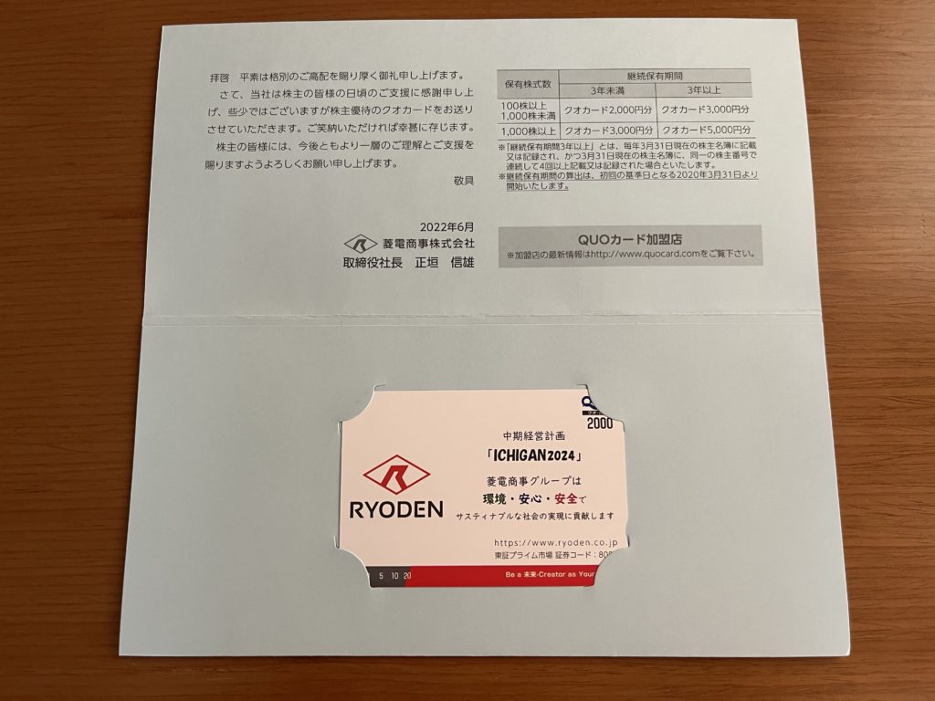僕は100株保有で保有期間が3年未満なので2,000円相当のQUOカードが貰えるということになります。
