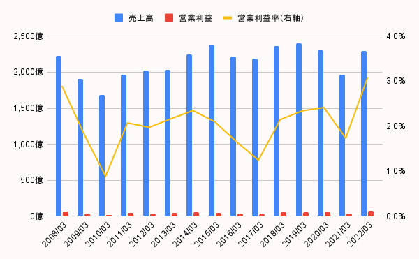 ※2022年6月時点の情報です。優待利回りは100株3年未満保有で2000円を貰える想定で計算しました。