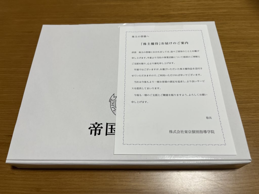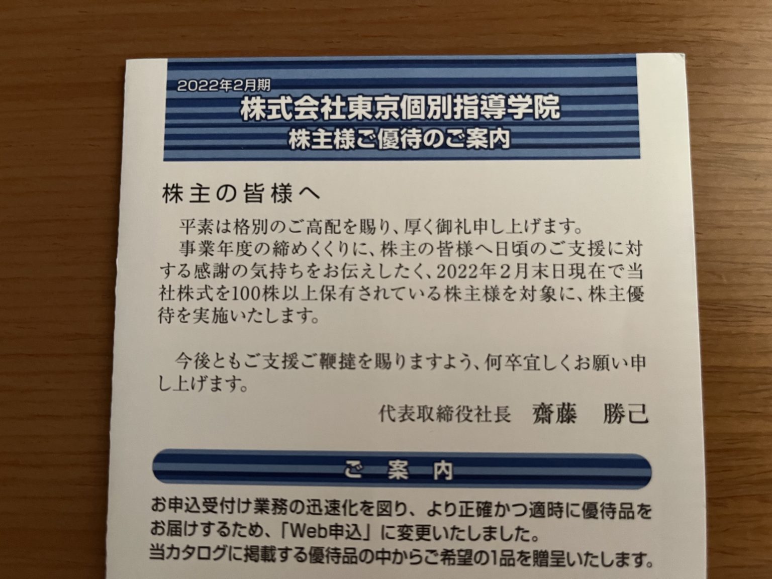 以上、東京個別指導学院の株主優待が届いた話でした。
