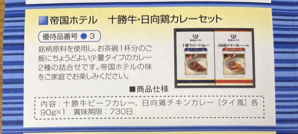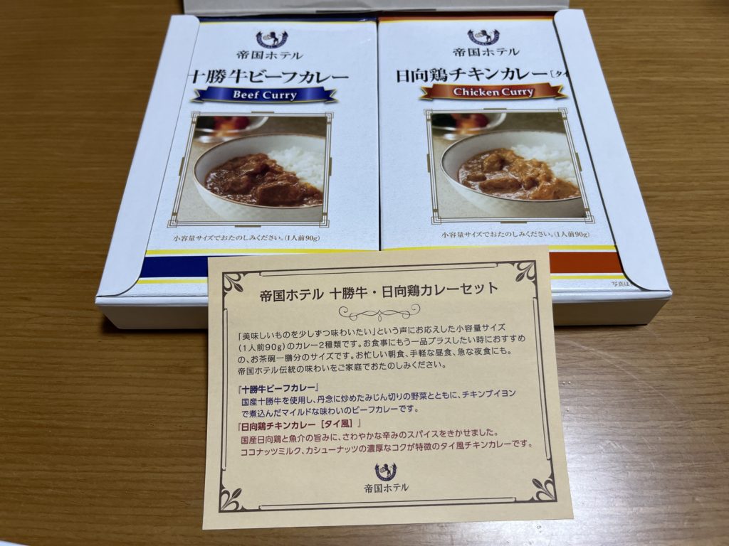 僕は「帝国ホテル 十勝牛・日向鶏カレーセット」を選びました。